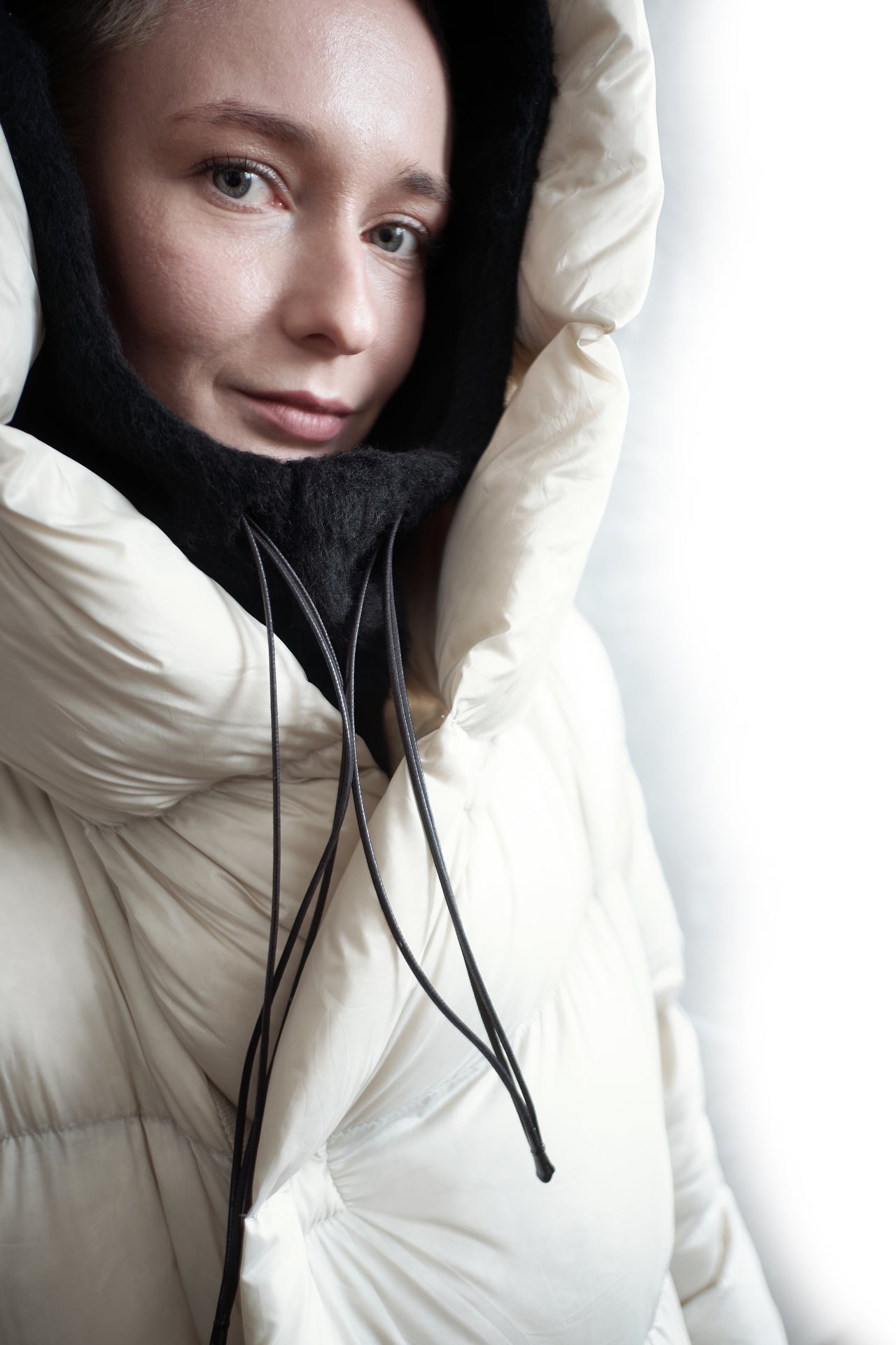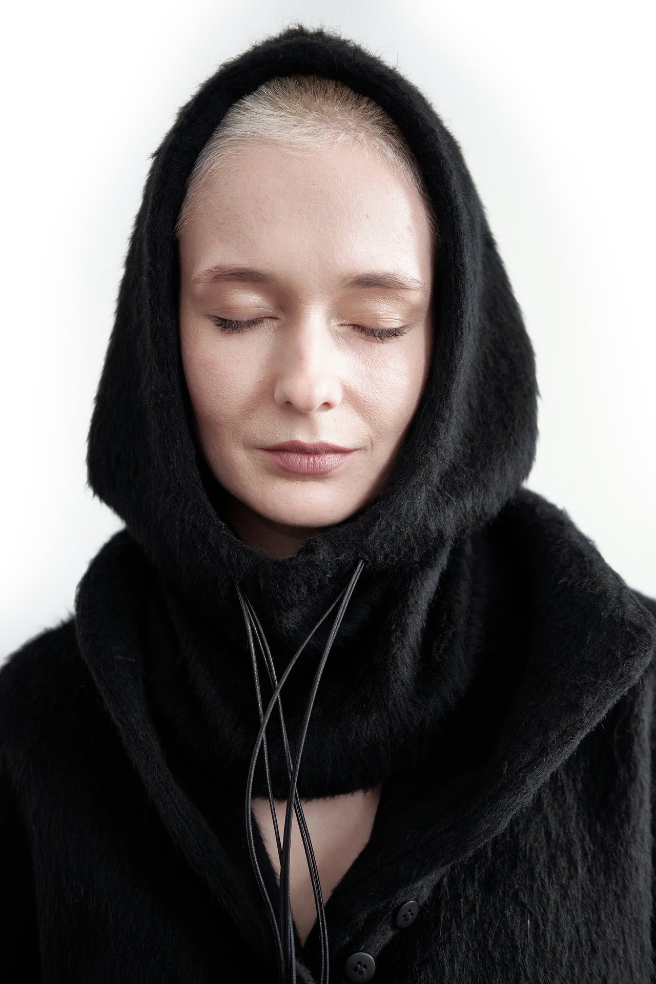 - Kapuze aus natürlichem Kaschmir mit Futter aus Anzugwolle