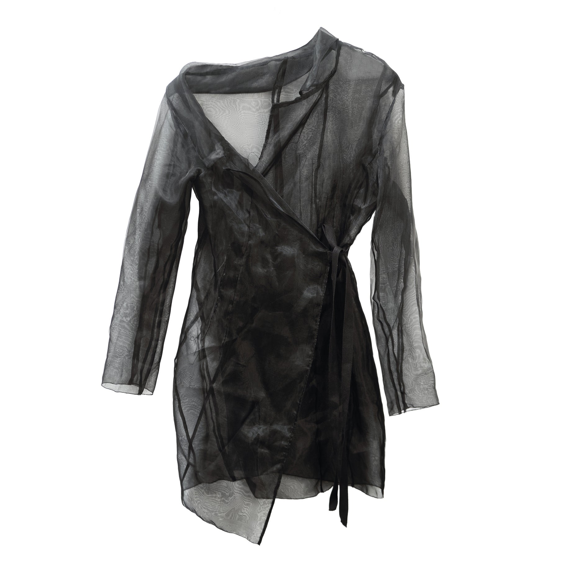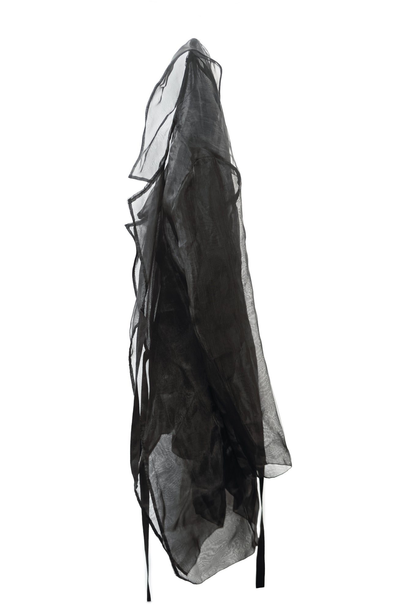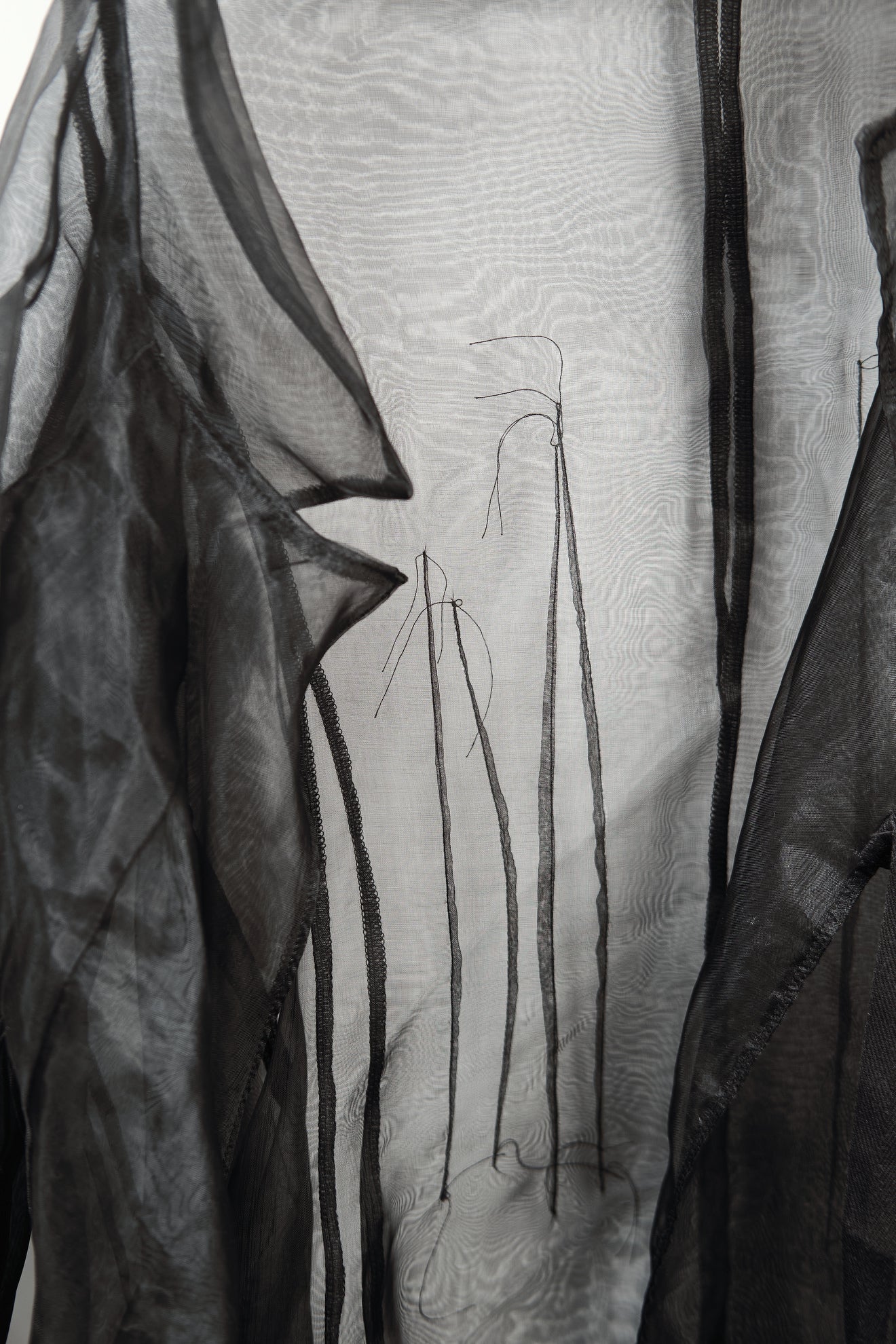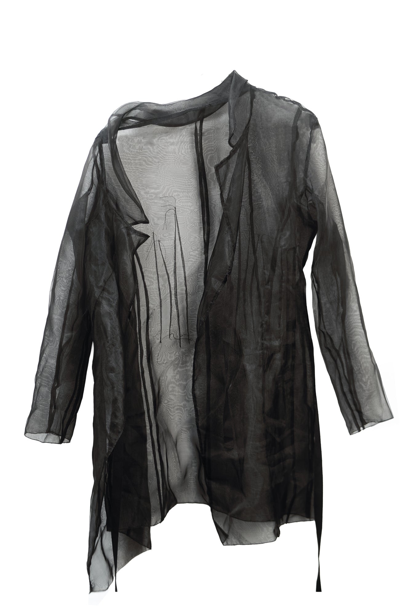 Asymmetrischer Blazer aus doppellagigem schwarzem Organza mit Viskose.