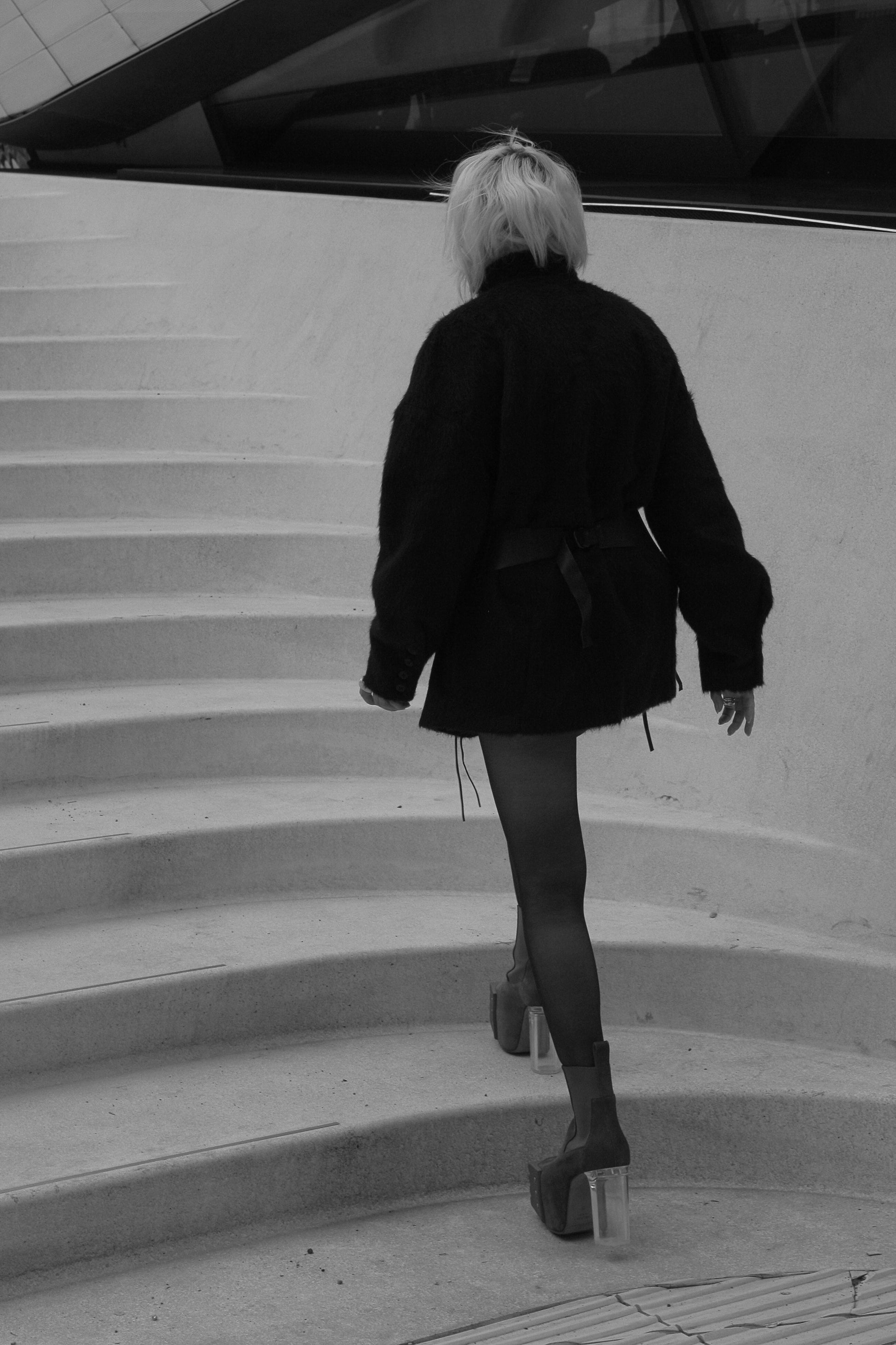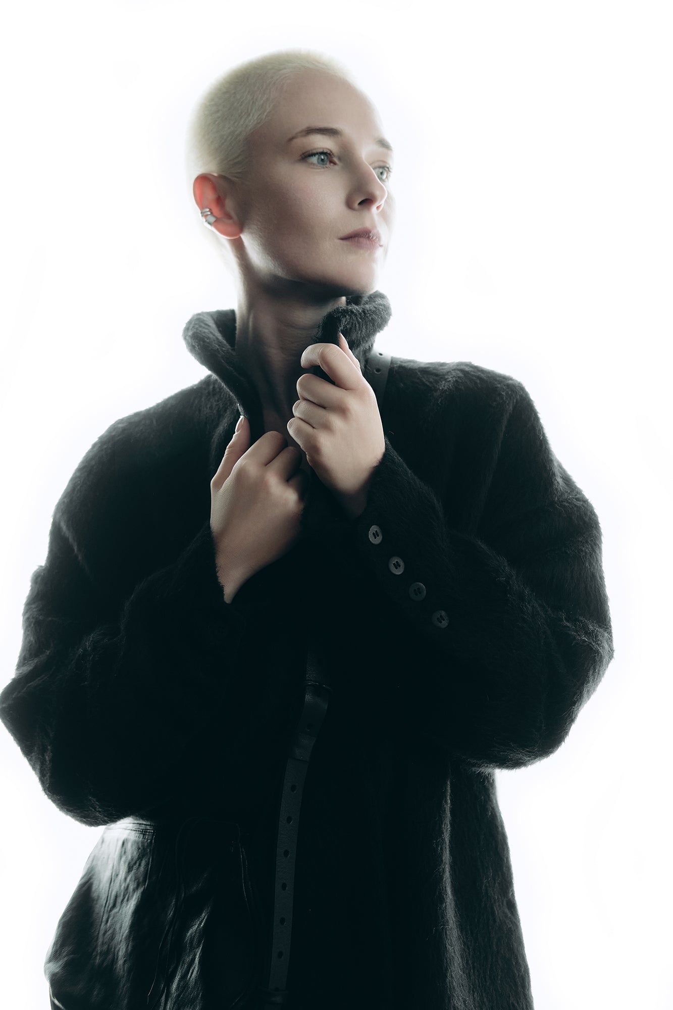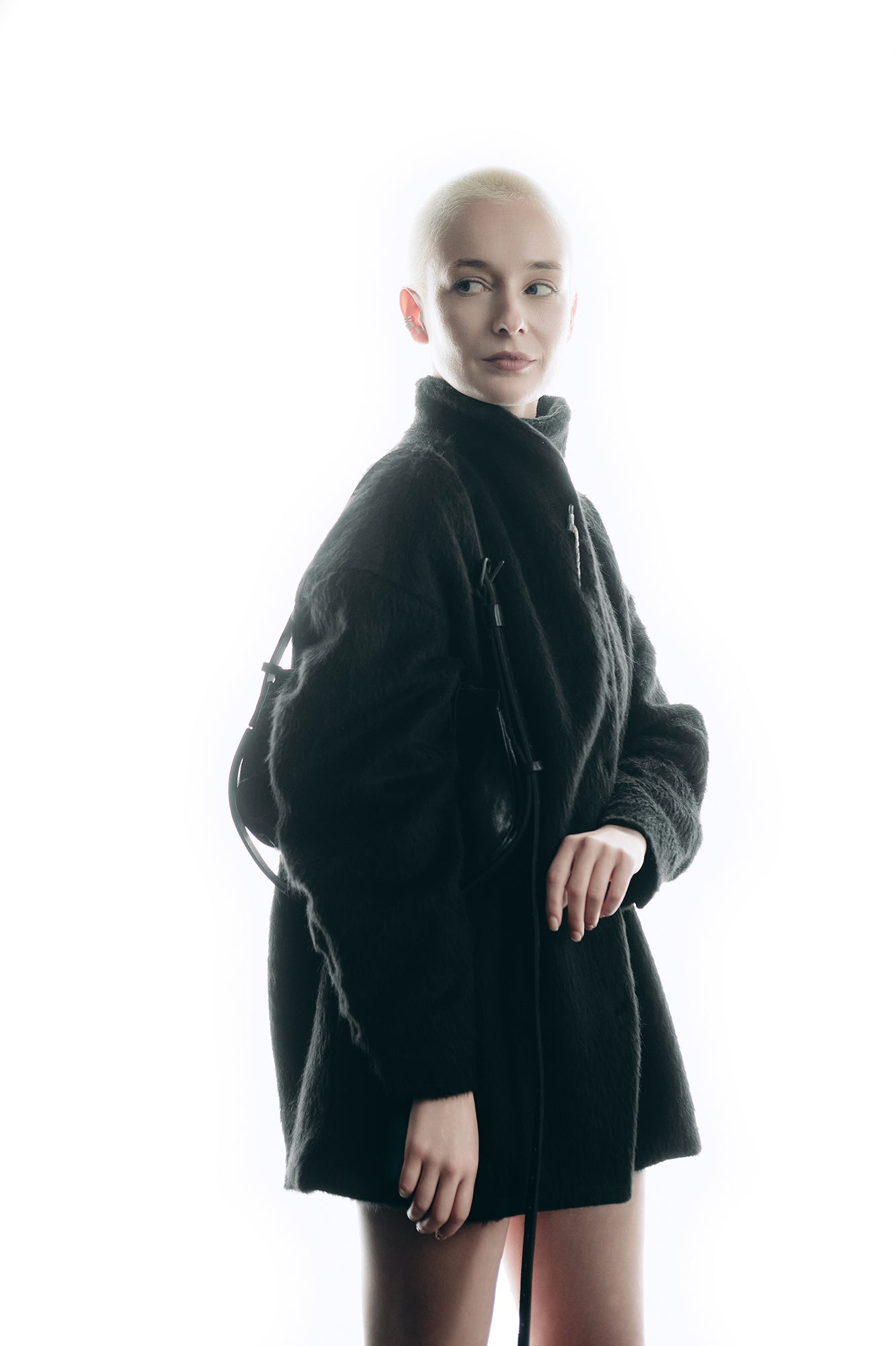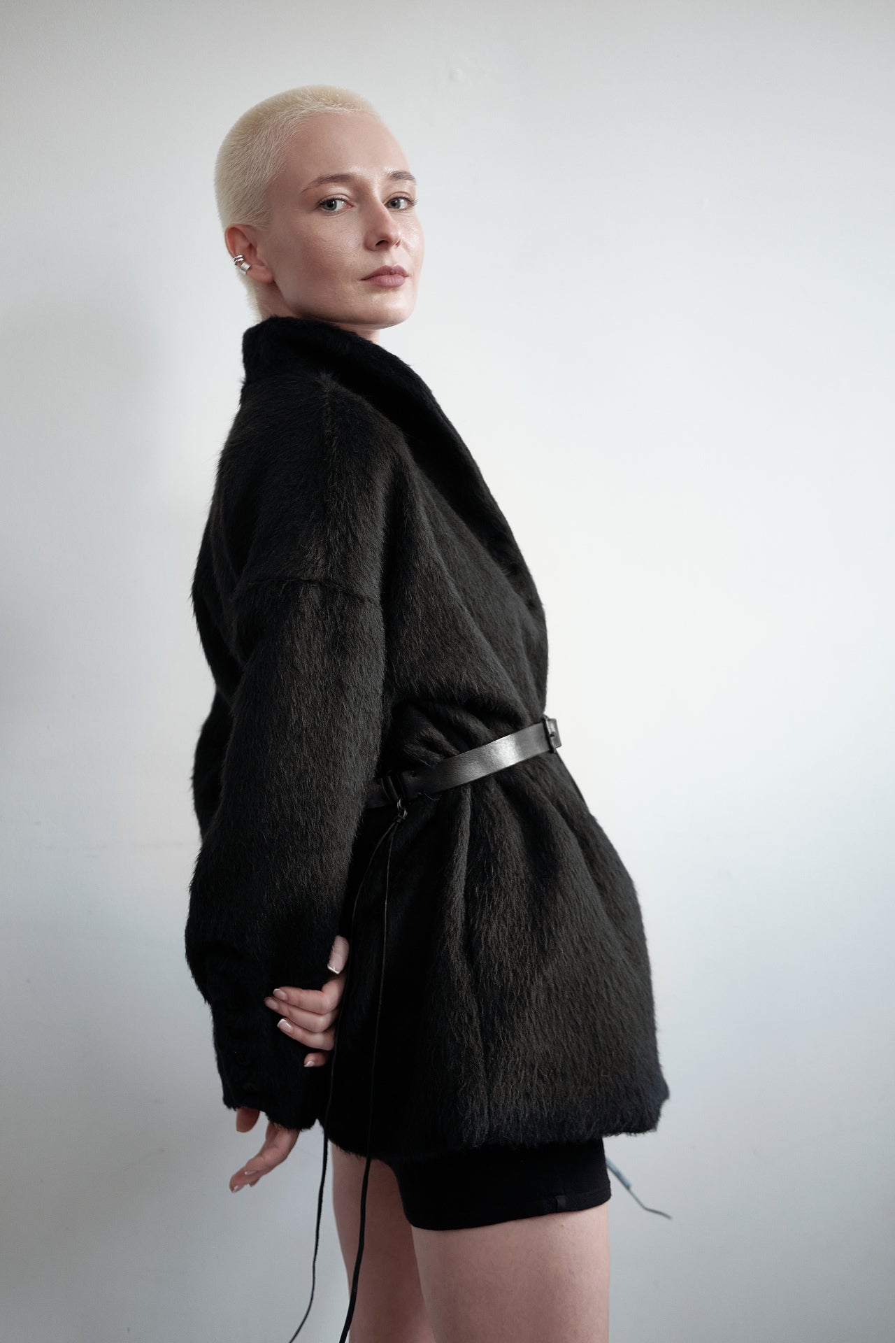 - D-förmige asymmetrische Jacke aus Kaschmirstoff mit Flor