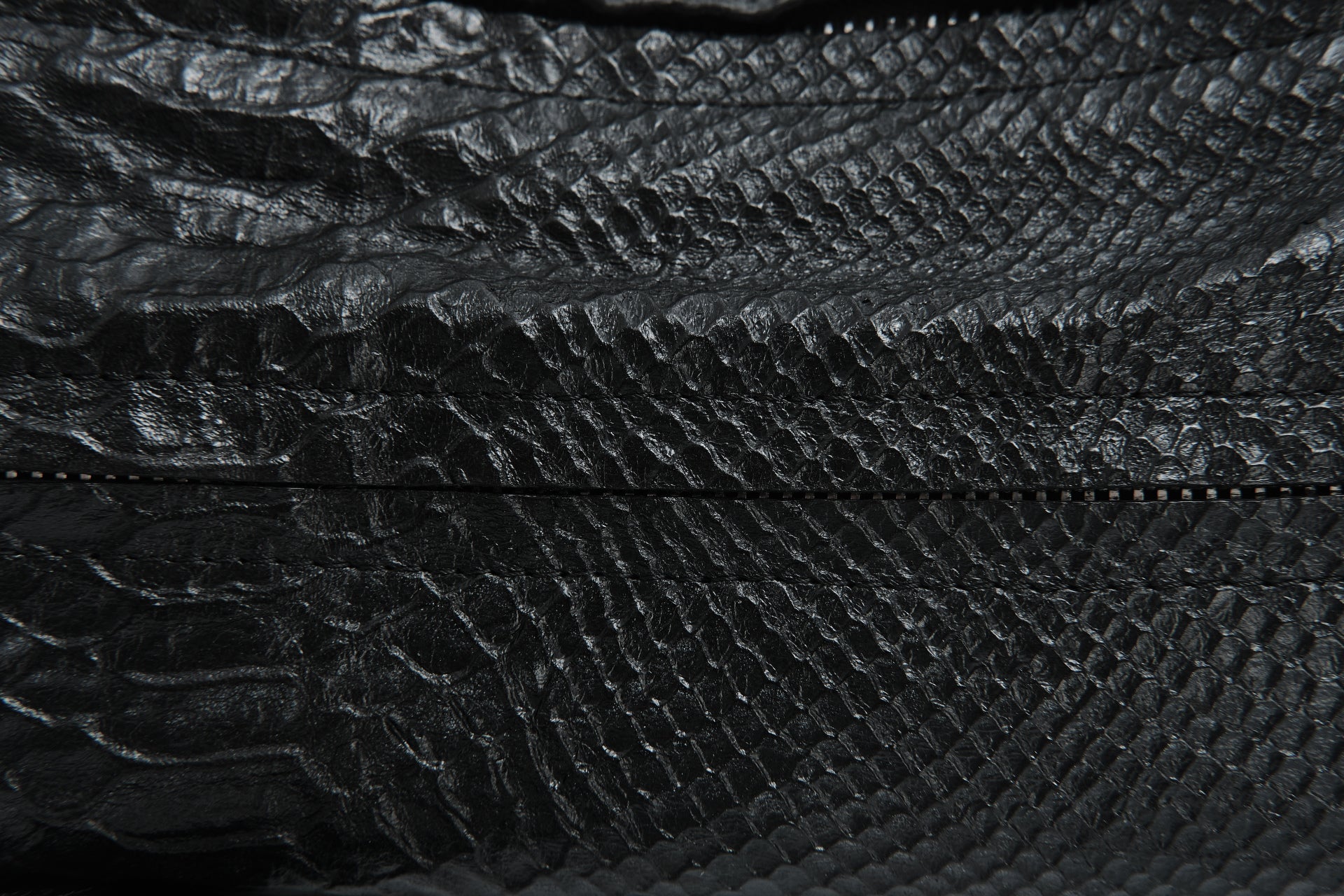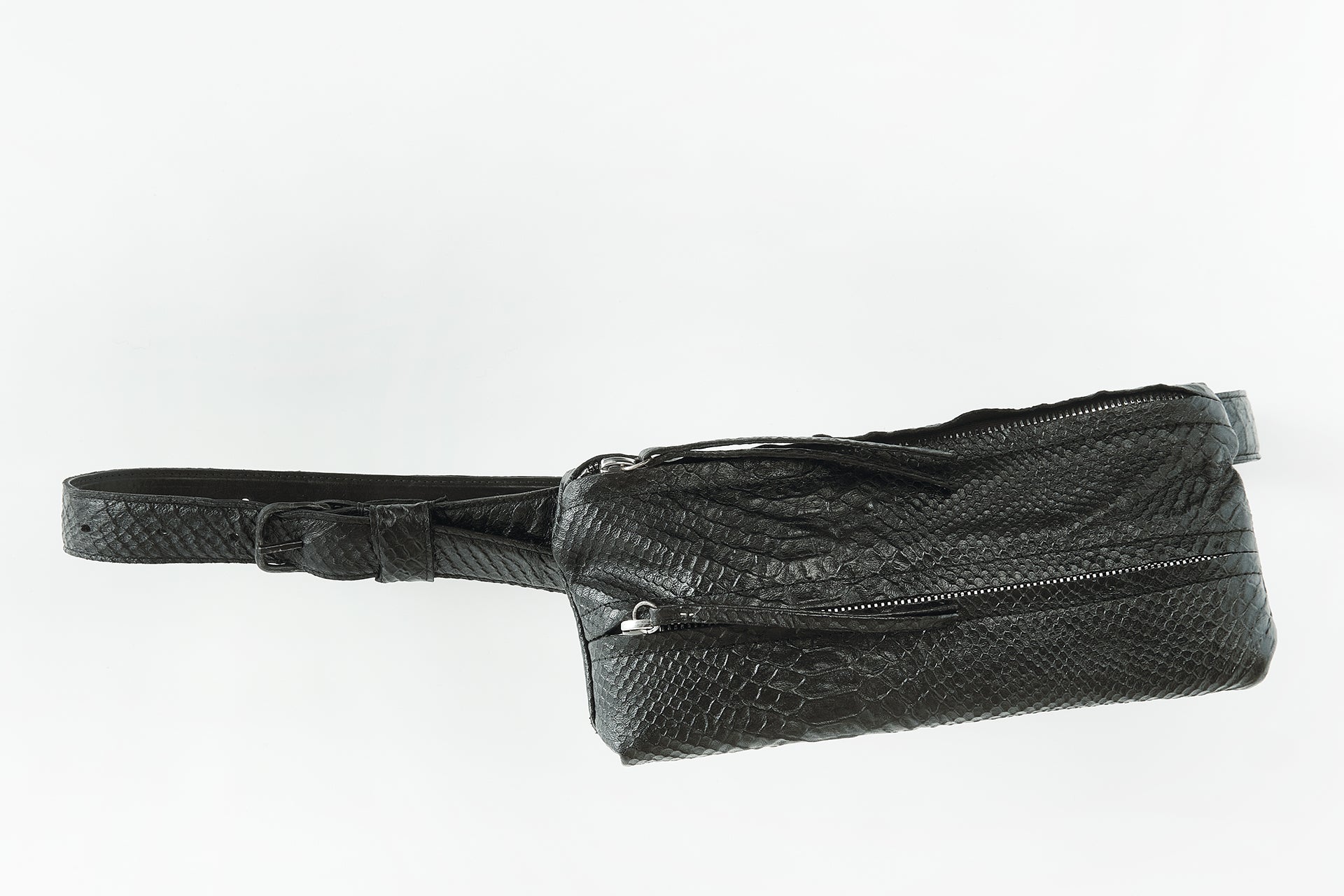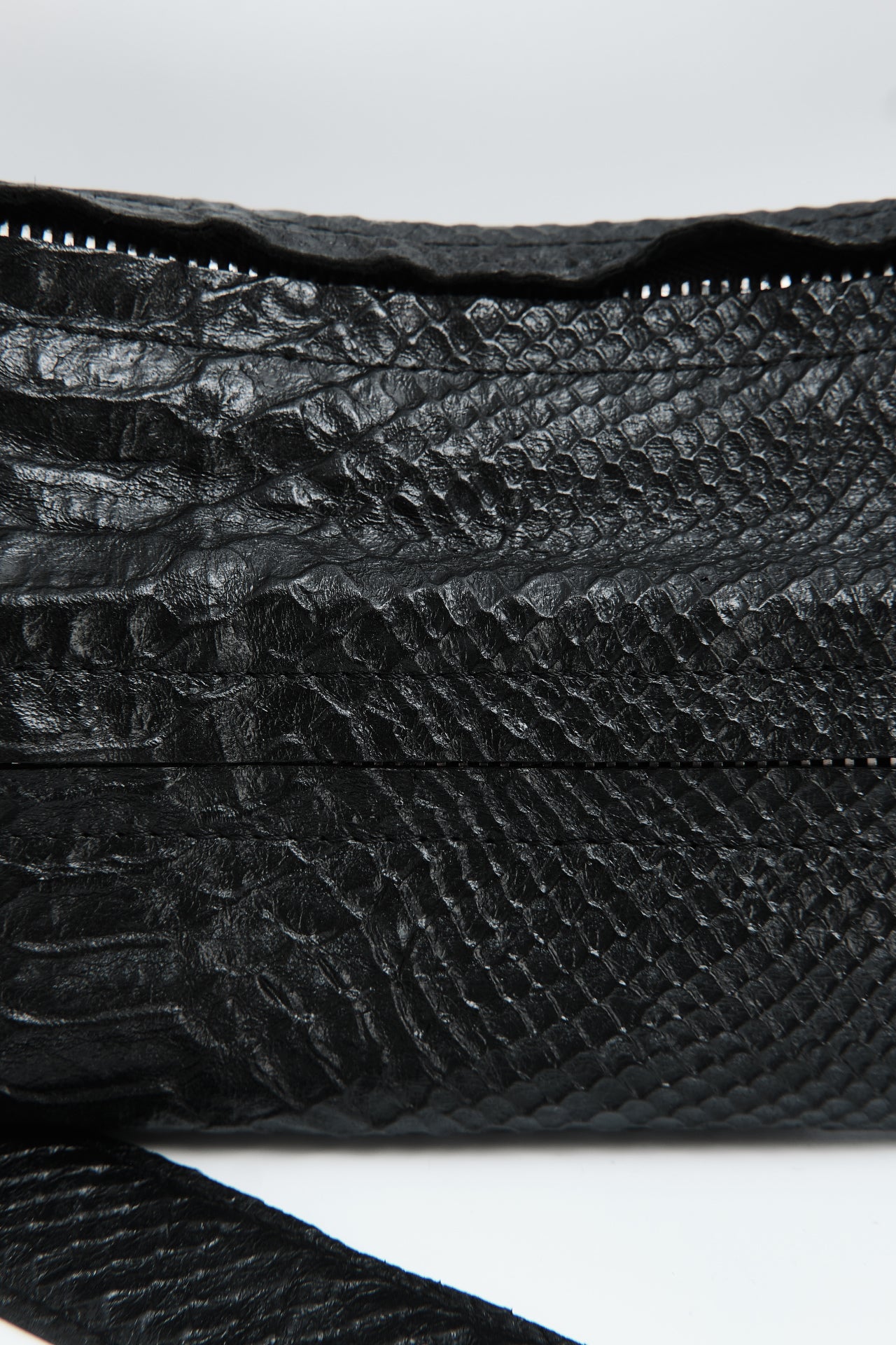 Material: Rindsleder mit Schlangenprägung, RiRi-Reißverschlüsse
