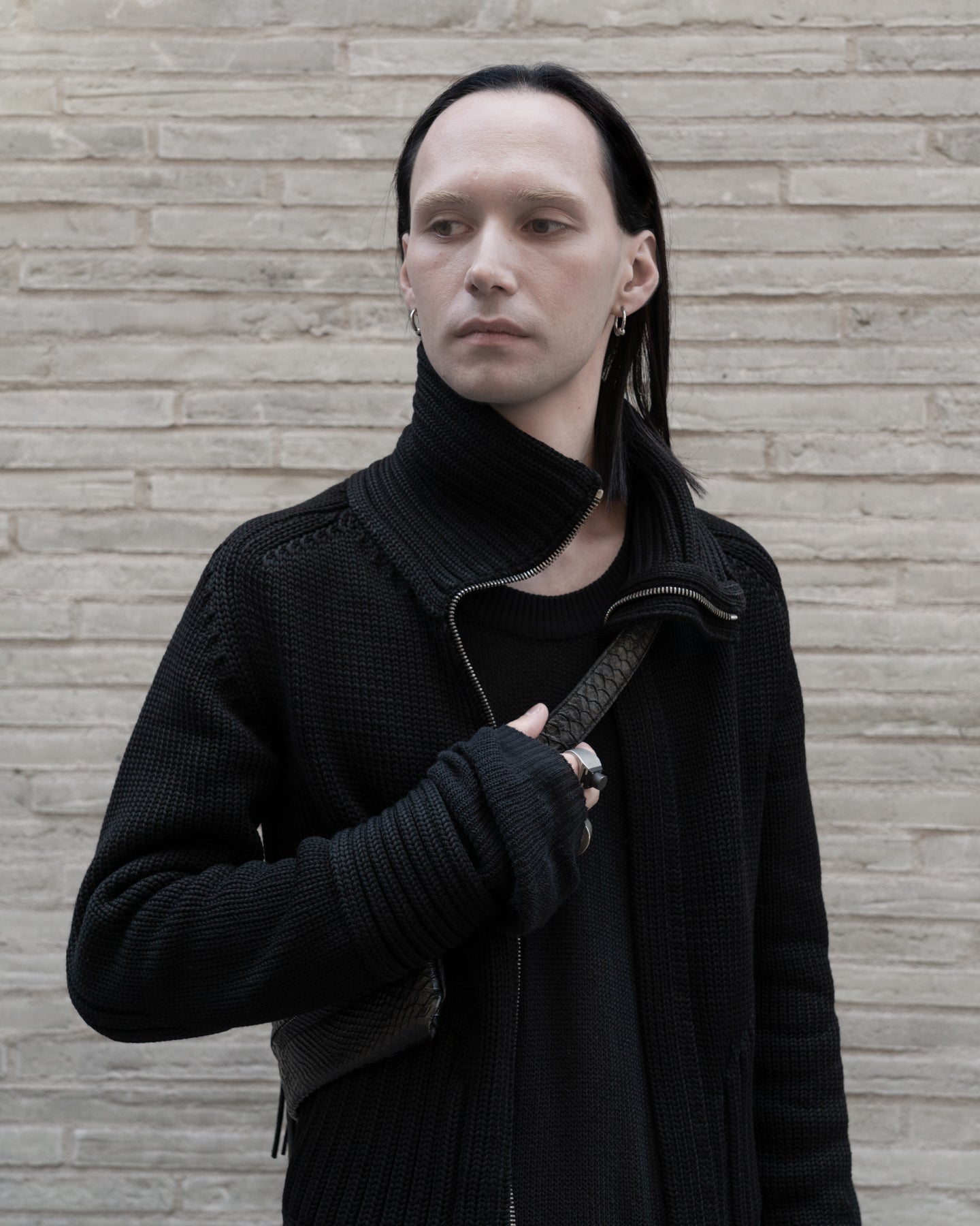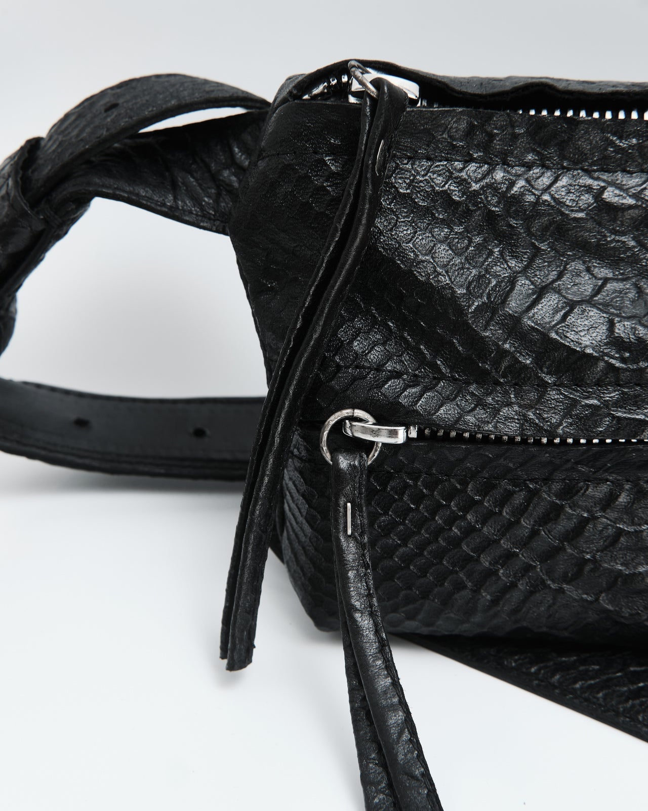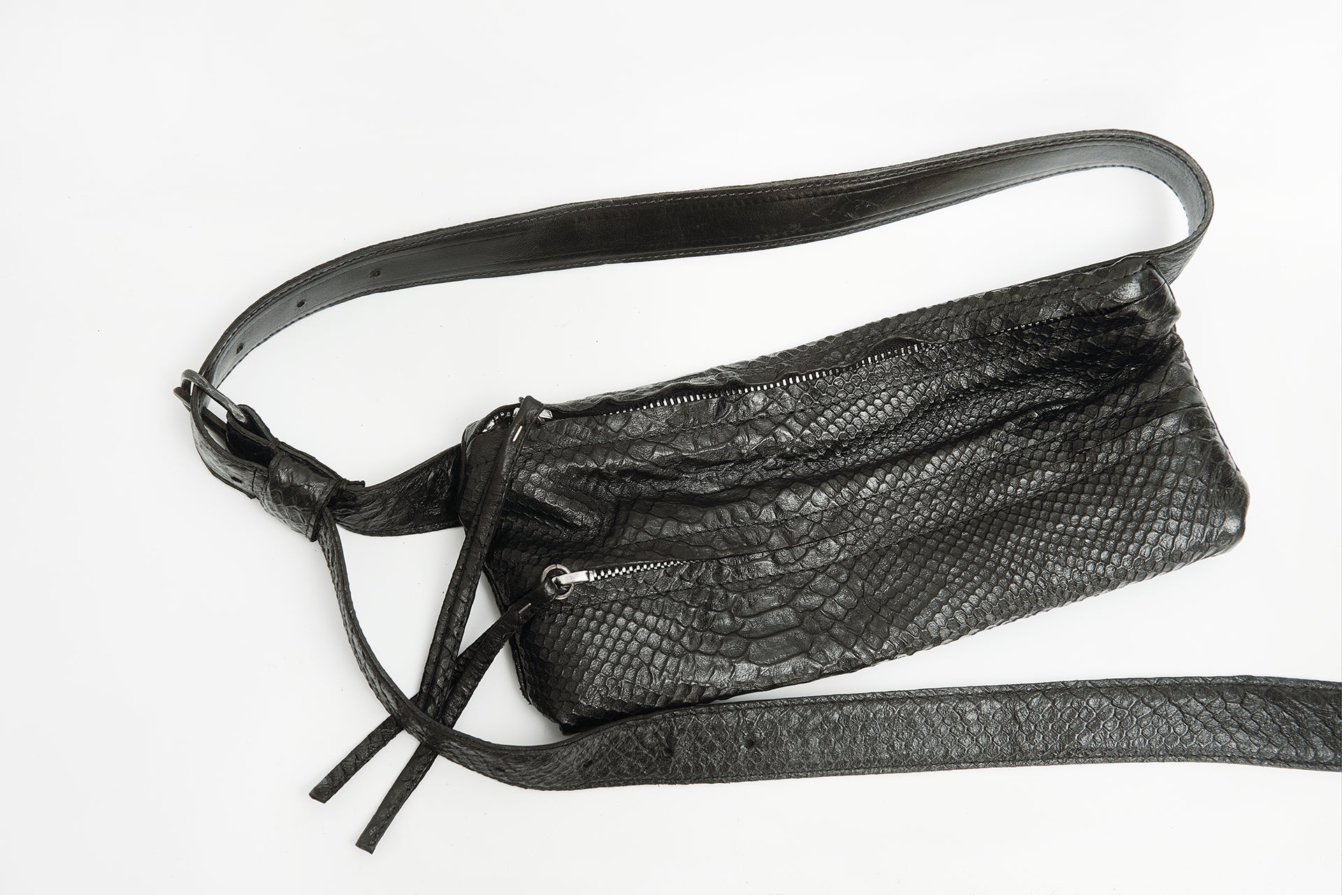 Material: Rindsleder mit Schlangenprägung, RiRi-Reißverschlüsse