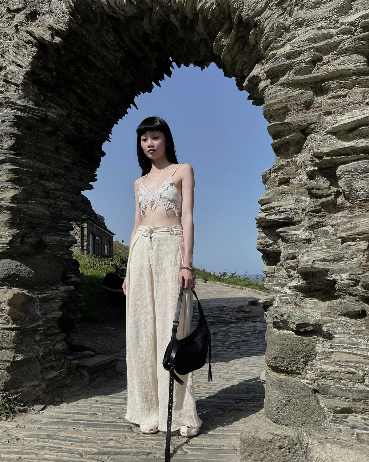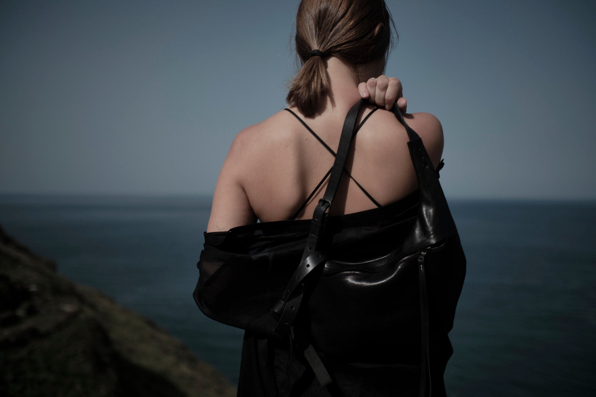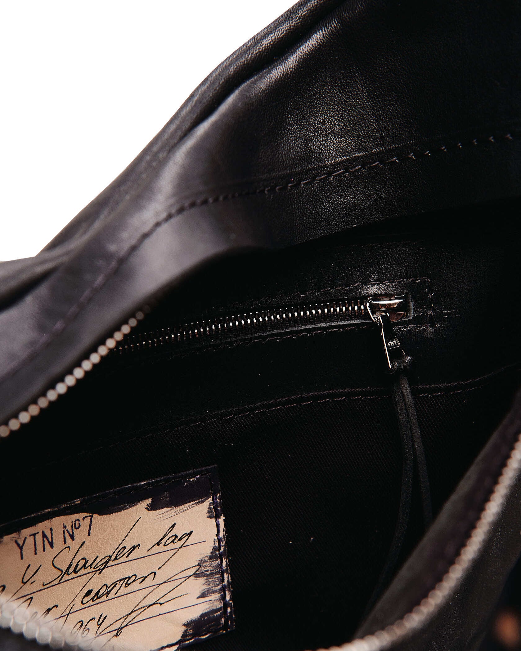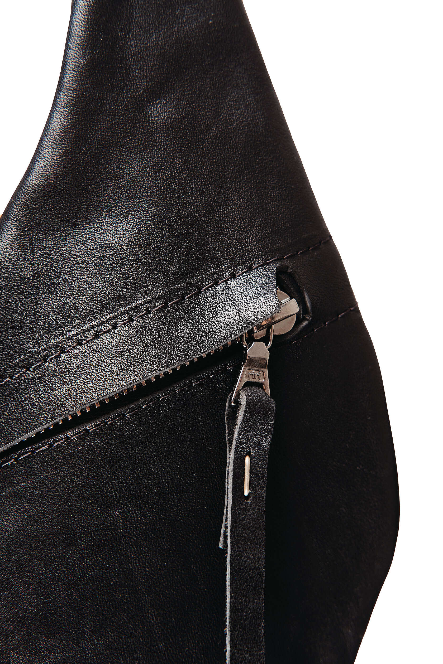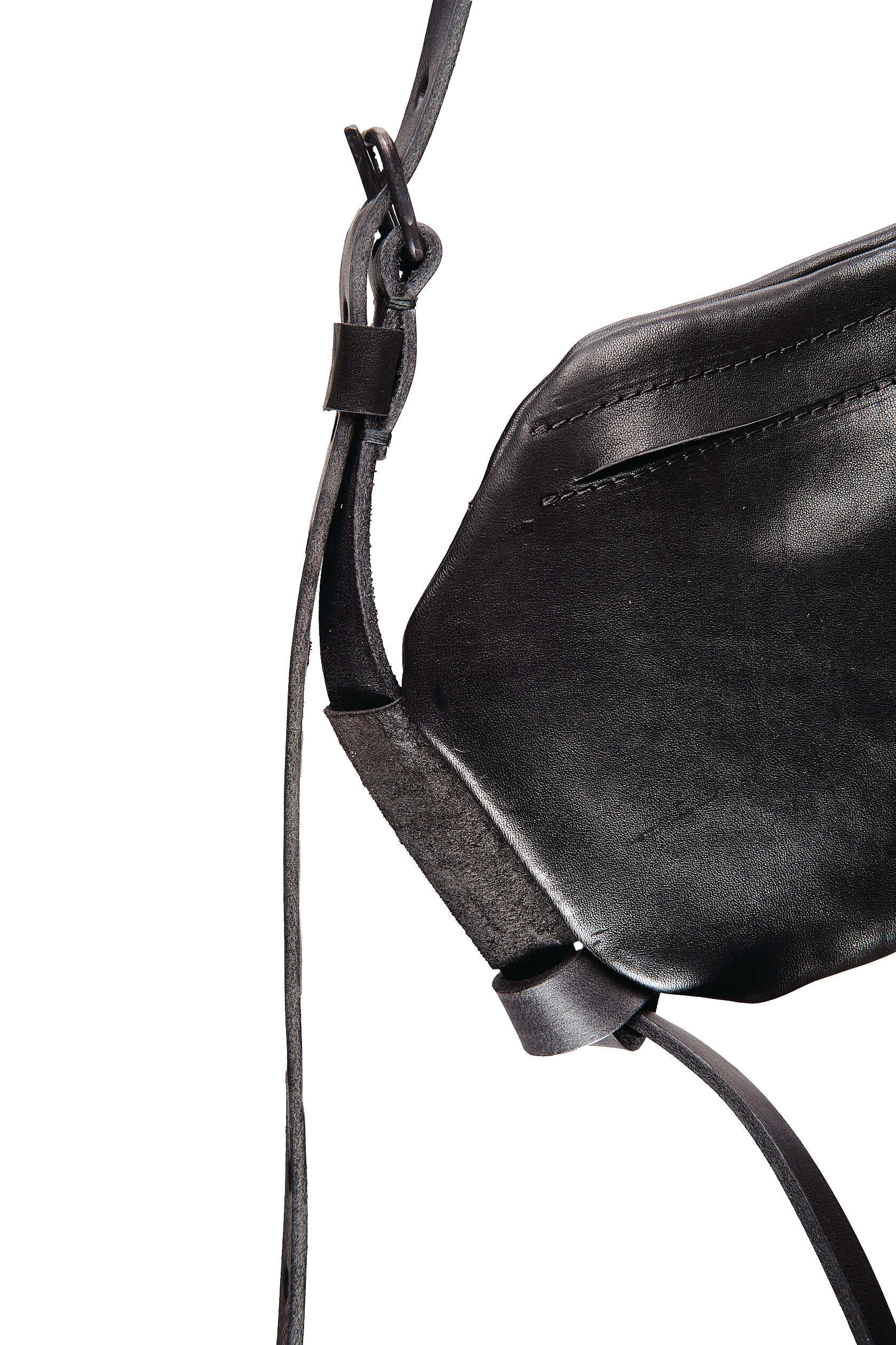 Ihre ergonomische Form schmiegt sich wie eine zweite Haut an den Körper – funktional, skulptural und sofort erkennbar. Die Tasche ist aus hochwertigen Materialien gefertigt und vollständig von Hand genäht. Sie verfügt über ein mit gewachster Baumwolle gefüttertes Hauptfach, einen Reißverschluss mit Lederlaschen und eine einzelne Innentasche mit Reißverschluss.