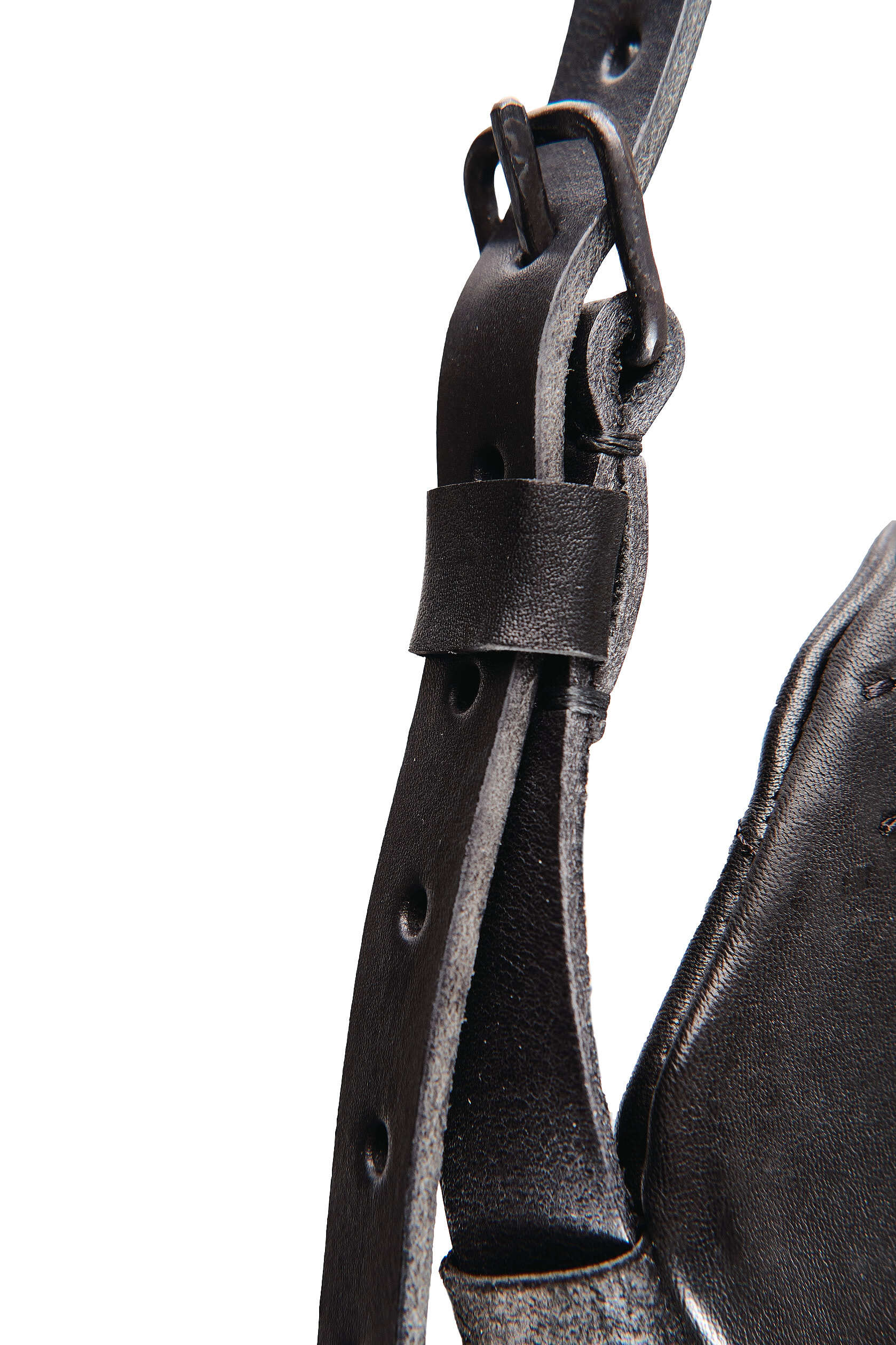 Die Silhouette ist vielseitig und anpassungsfähig und verfügt über eine Schnalle aus gebläutem Stahl und einen verstellbaren Schultergurt.