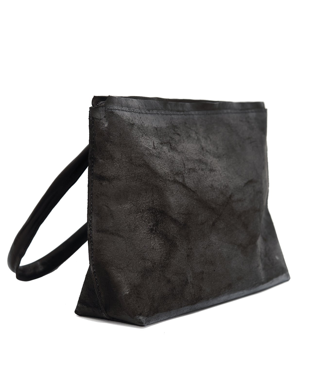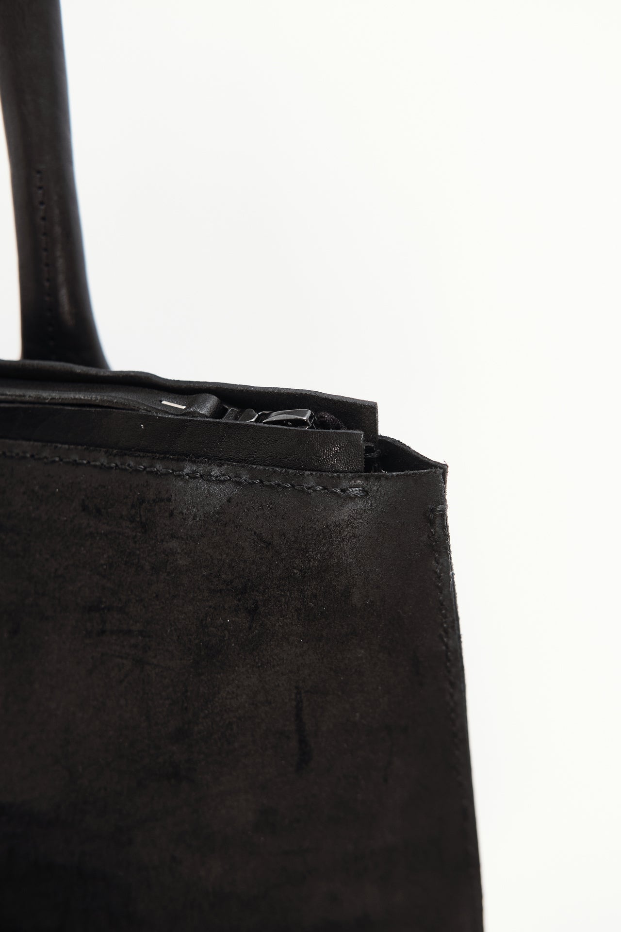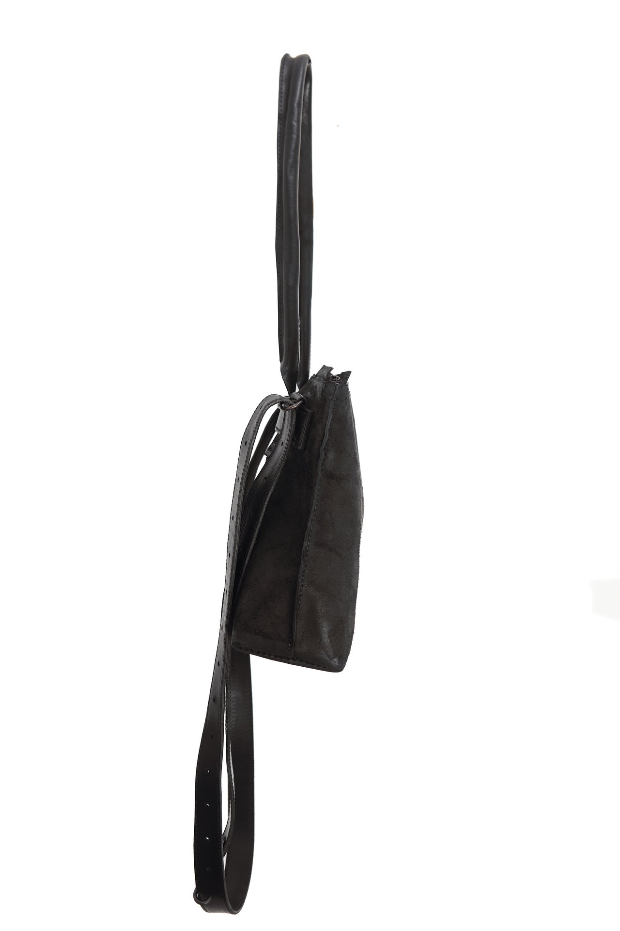 Material : Basis – russisches Rindsveloursleder mit handgemalten Details, Griffe – pflanzlich gegerbtes Leder, Futter – gewachste Baumwolle, RiRi-Reißverschlüsse, speziell geschmiedeter gebläuter Stahl