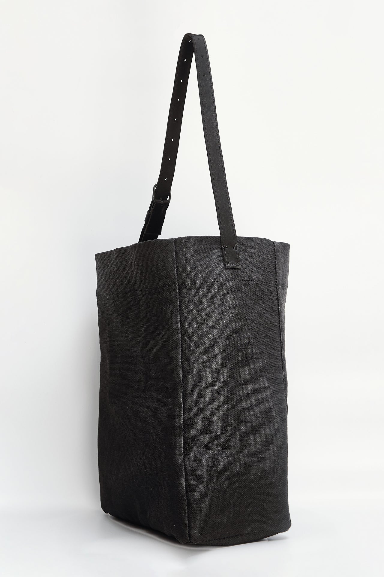 Tragetasche aus gewachstem Canvas – eine strukturierte Reisetasche für den Alltag aus gewachstem Canvas mit Griffen aus pflanzlich gegerbtem toskanischem Pferdeleder. Entworfen und handgefertigt in Islington, London.