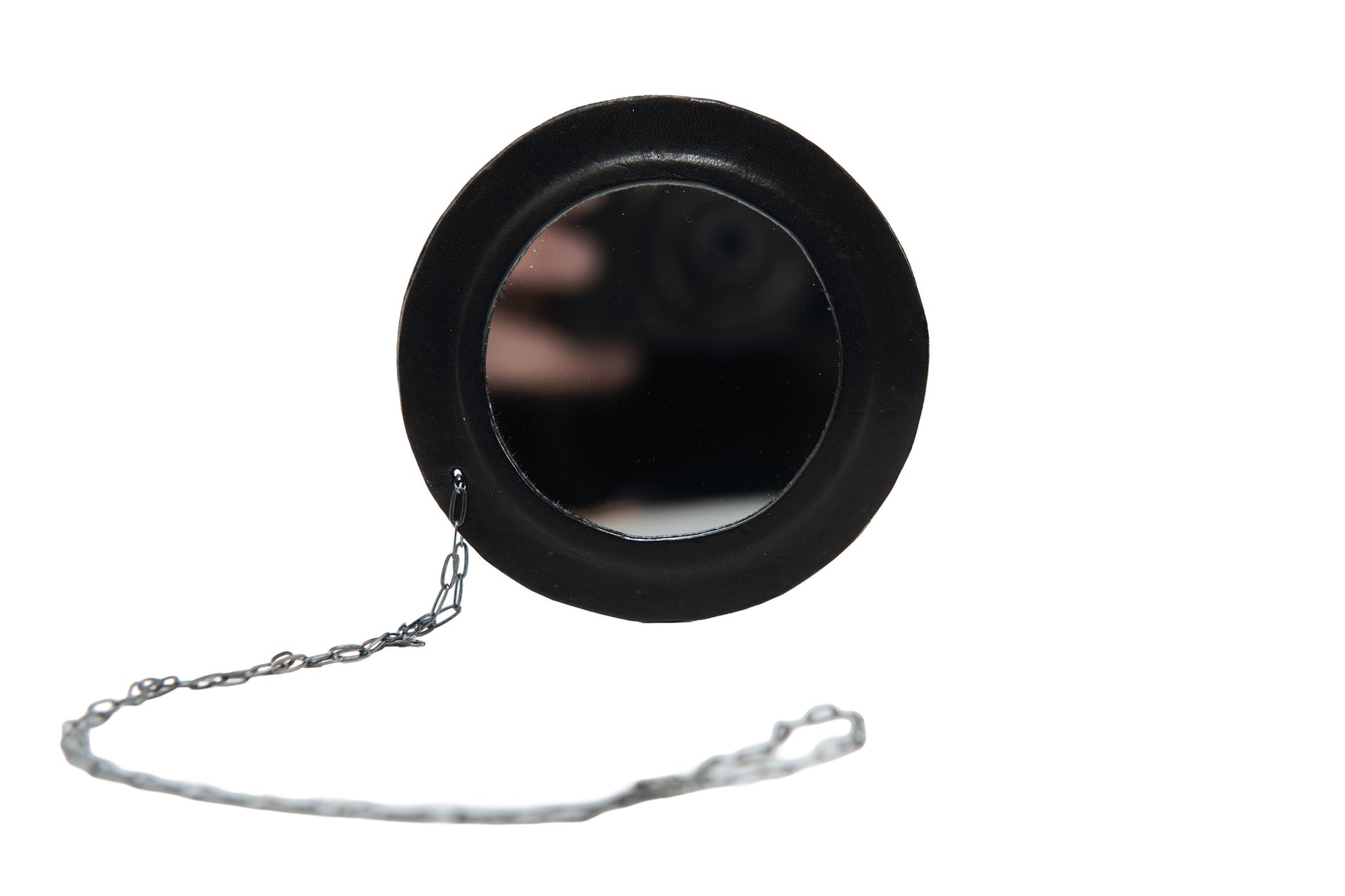 A compact 7cm glass mirror set in premium vegetable-tanned Tuscan leather.