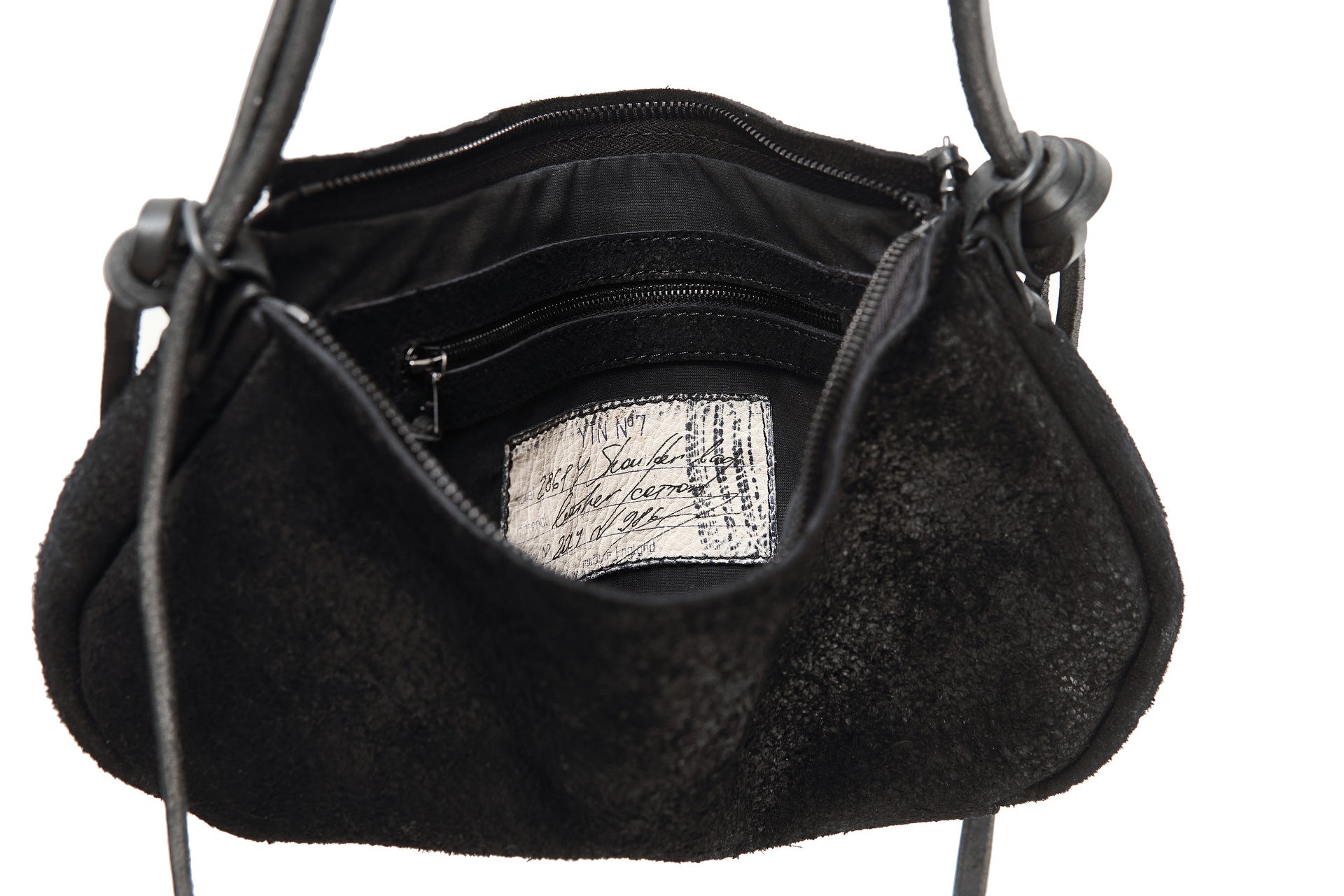 The shoulder strap adjusts simply by knotting to your desired length and attaches to hand-forged blued steel D-rings—designed exclusively for YTN №7.