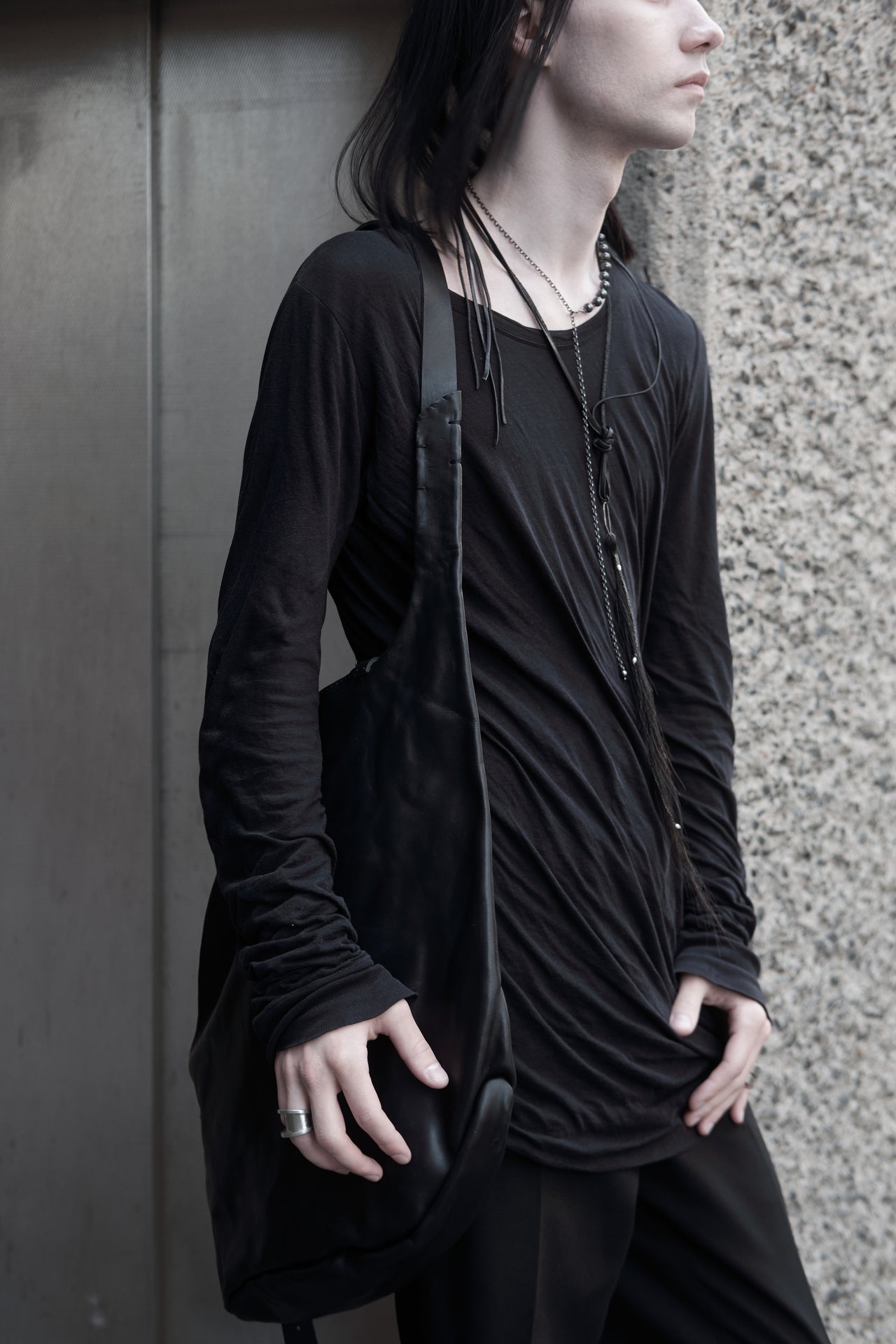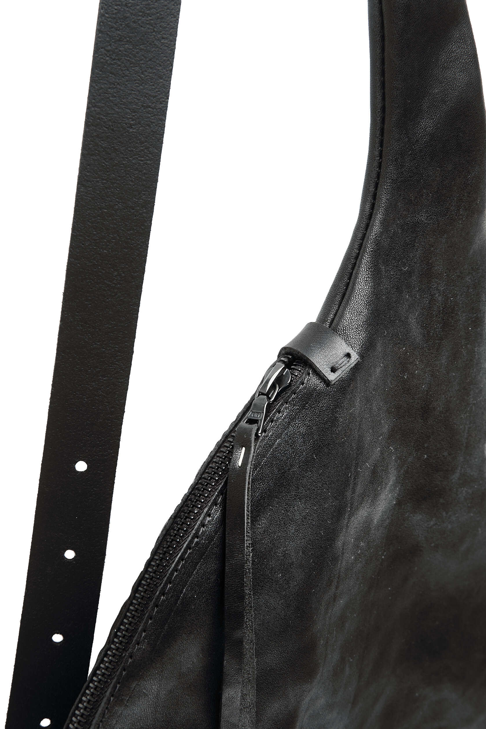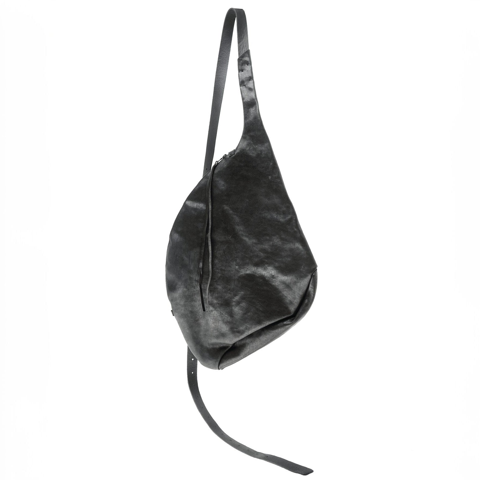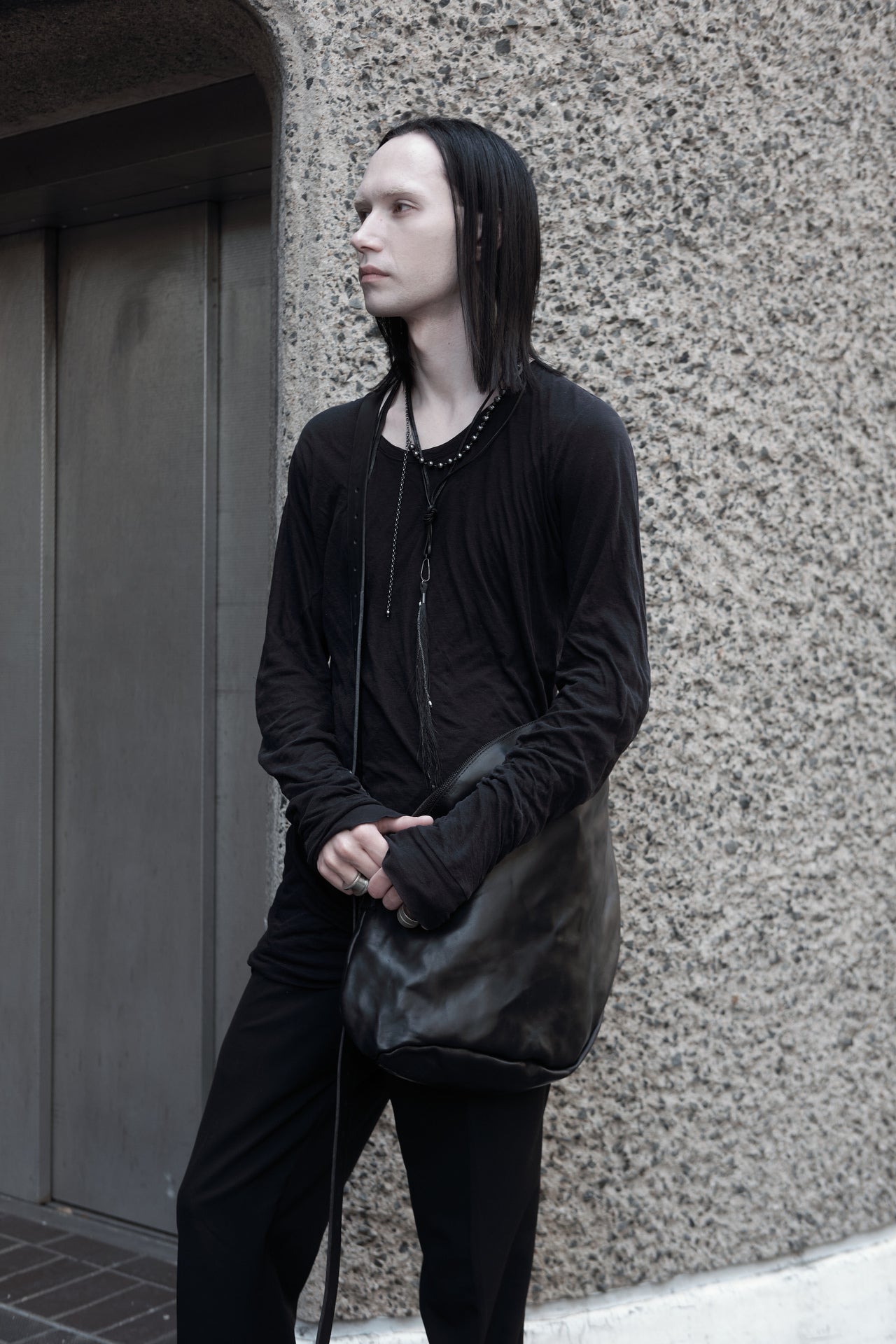 Inside, a single welt zip pocket keeps essentials organized, while a detachable leather clutch adds versatility to the design. The adjustable shoulder strap is anchored with custom-forged blued steel hardware, unique to the brand. Each detail is executed by hand, ensuring longevity and distinct character.
