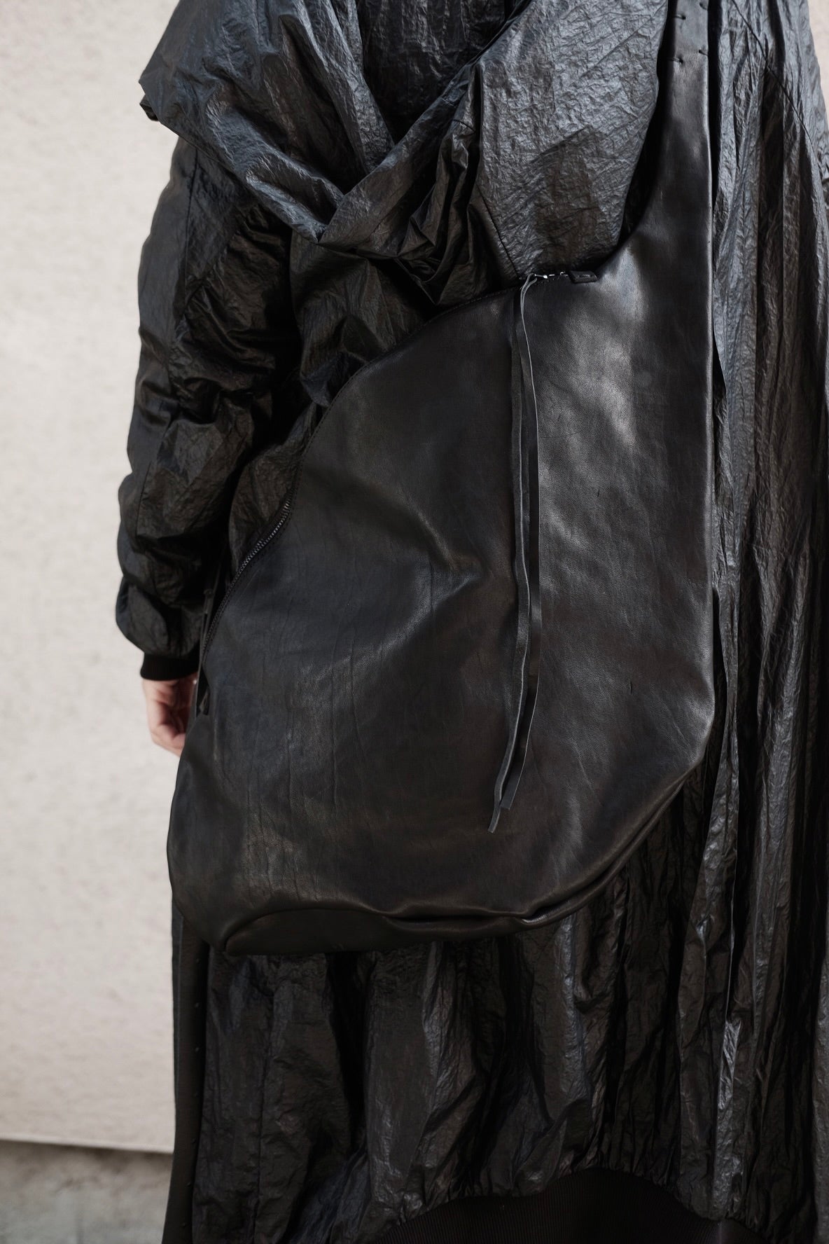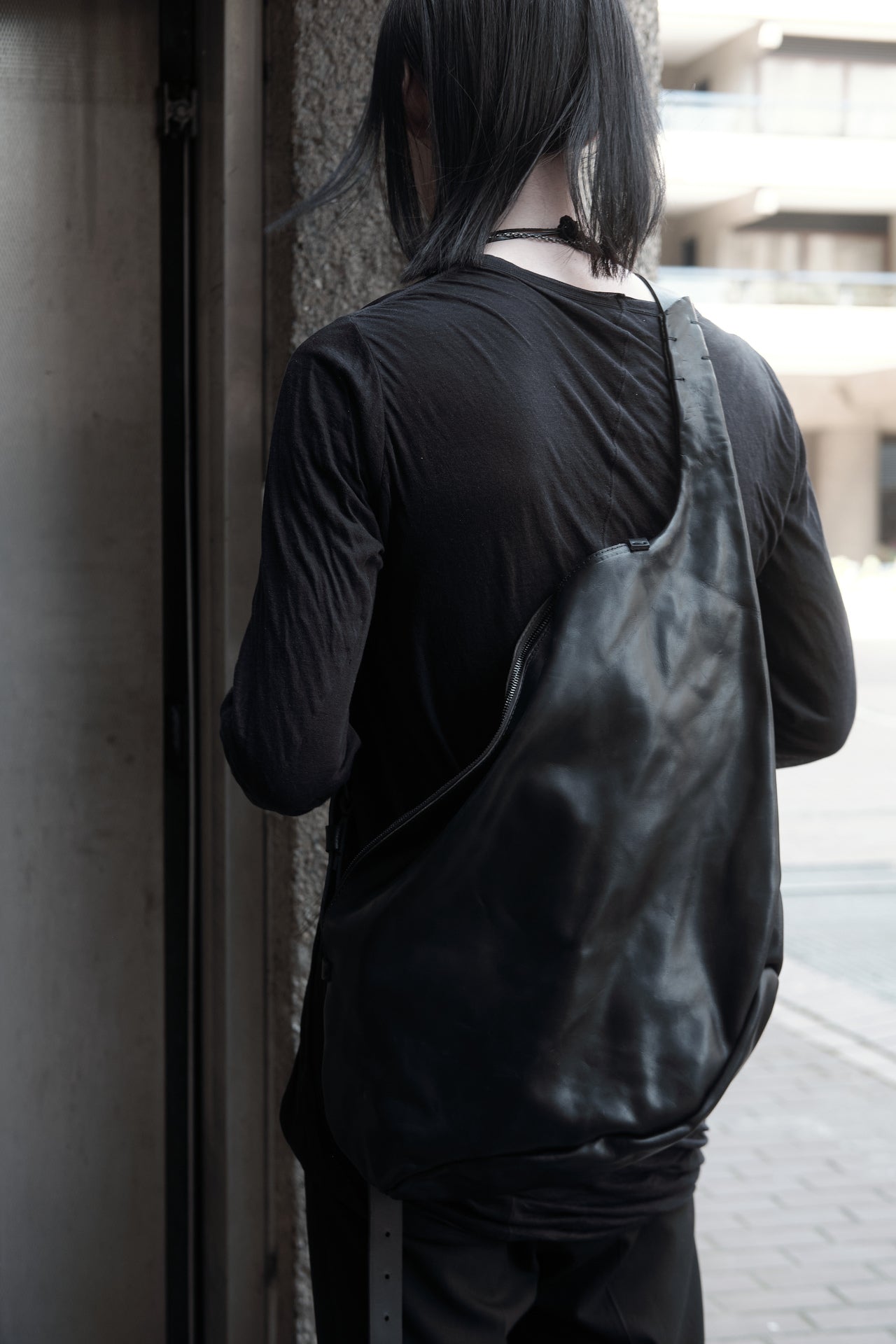 This crossbody bag by YTN №7 is made from premium Tuscan horse leather and lined with black waxed cotton. Designed to carry more while maintaining a clean, sculptural form, it features a spacious main compartment that fits up to a 13" MacBook, closed securely with a zip and finished with a leather pull.