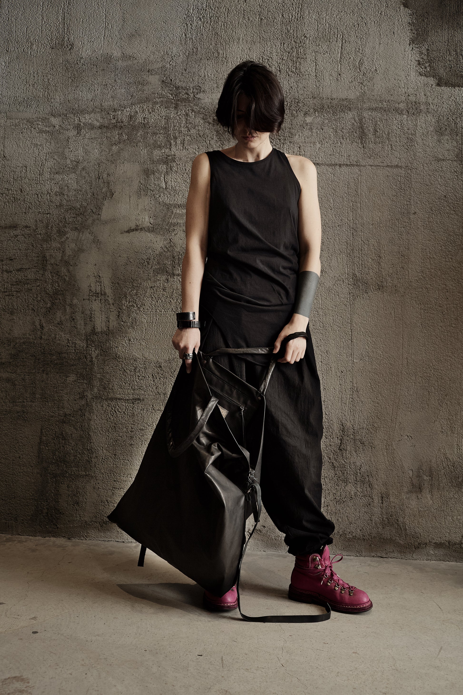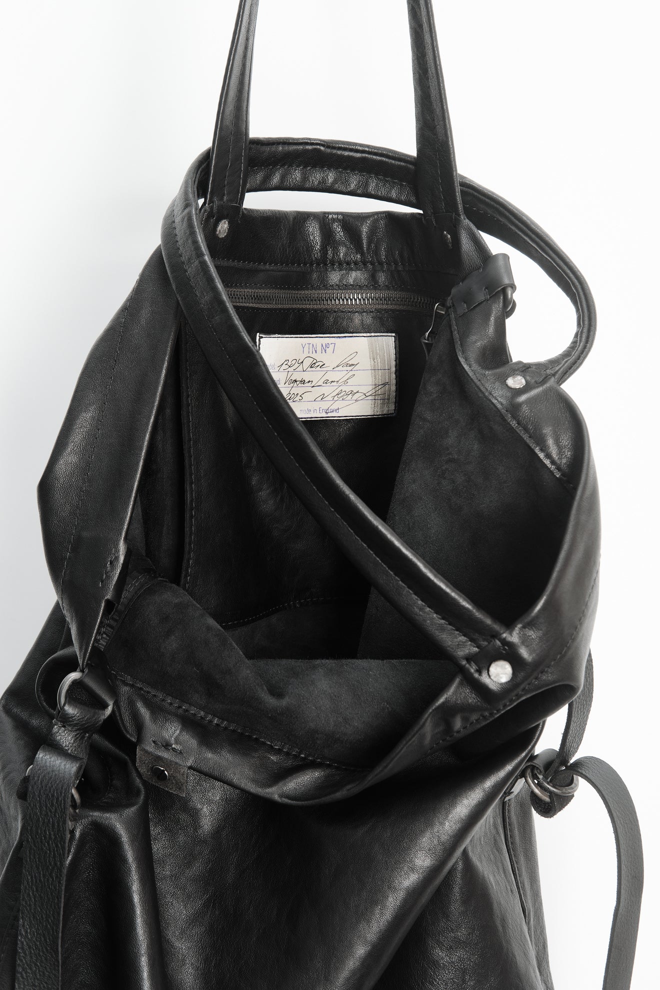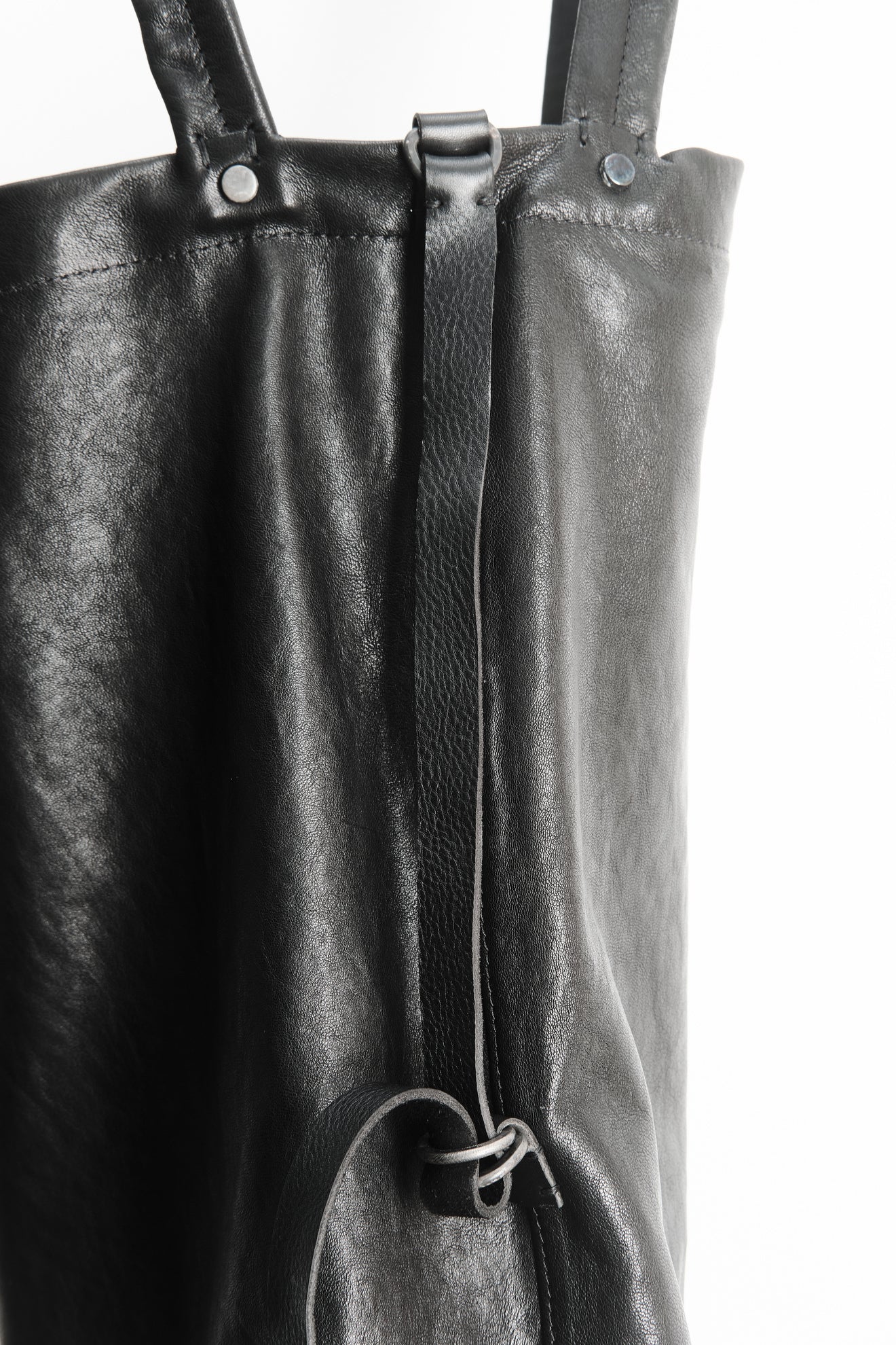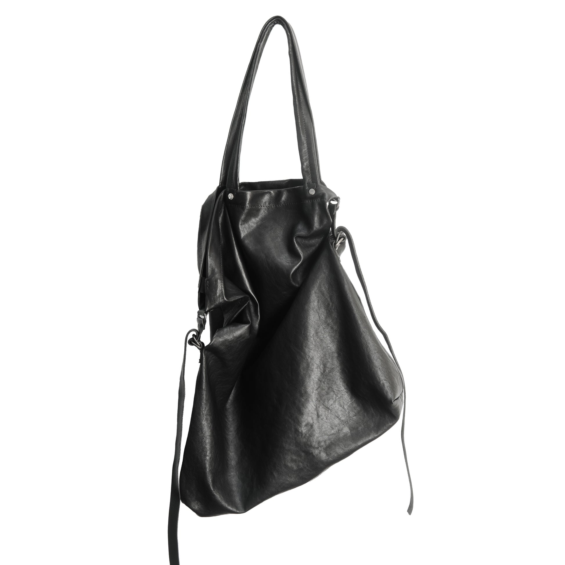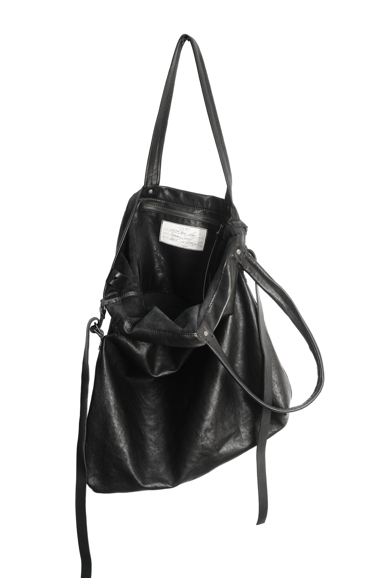This oversized tote is crafted from supple vegetable-tanned calfskin, chosen for its soft hand and strength. Featuring an asymmetrical cut, the form shifts slightly with wear, offering a sculptural presence that adapts to the body. The main compartment is unlined and generous, with a single interior zip pocket for smaller items.