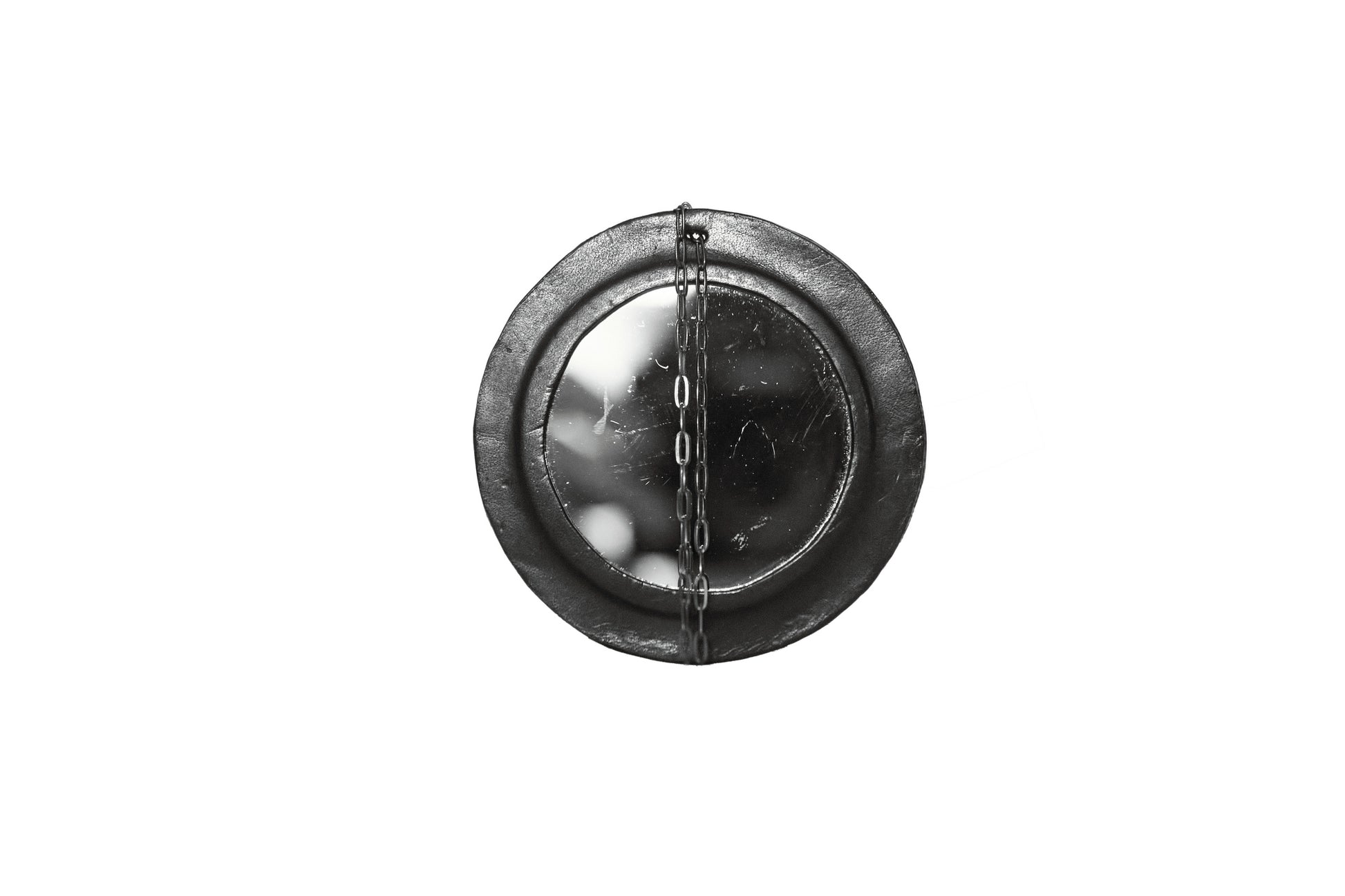 A compact 7cm glass mirror set in premium vegetable-tanned Tuscan leather.
