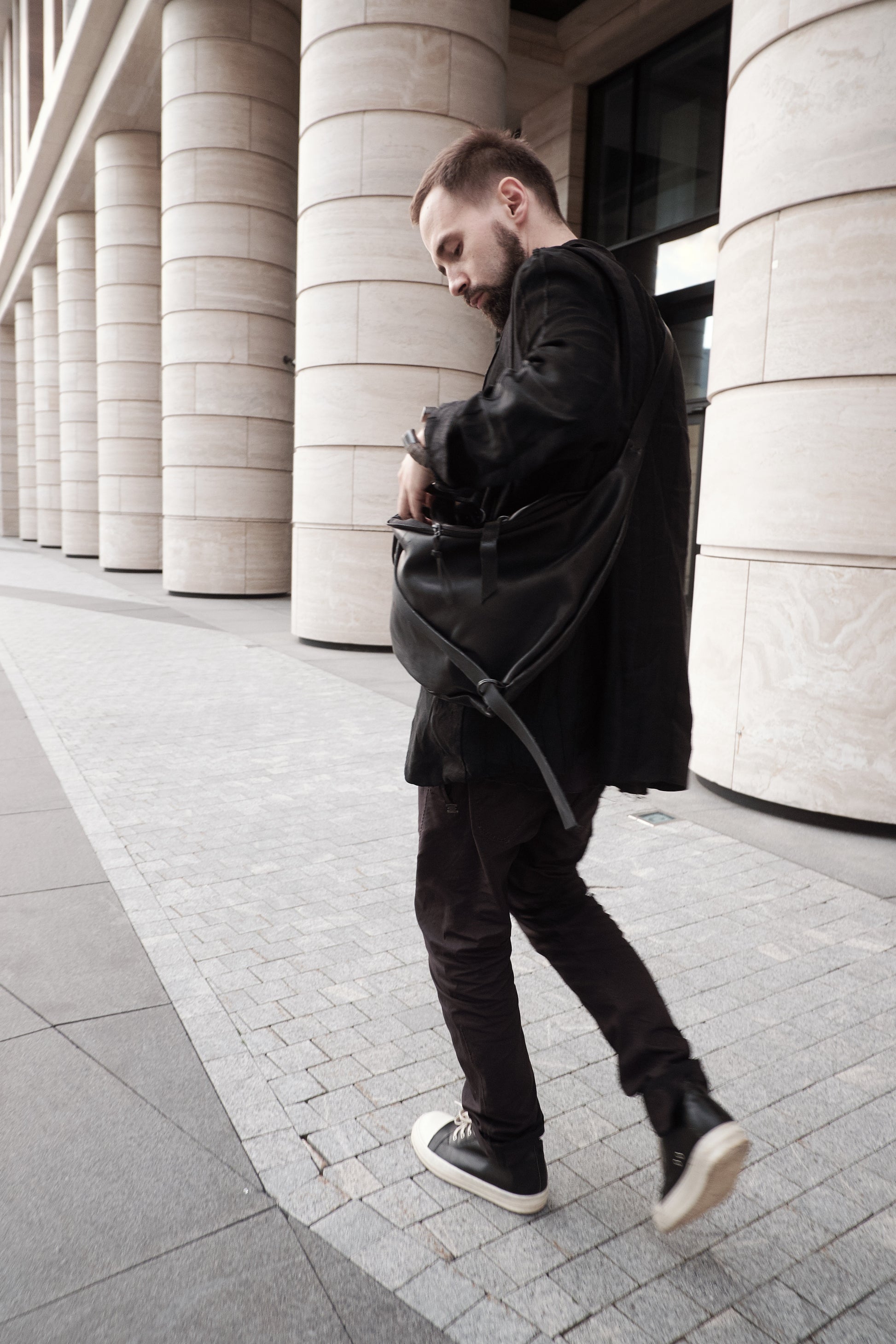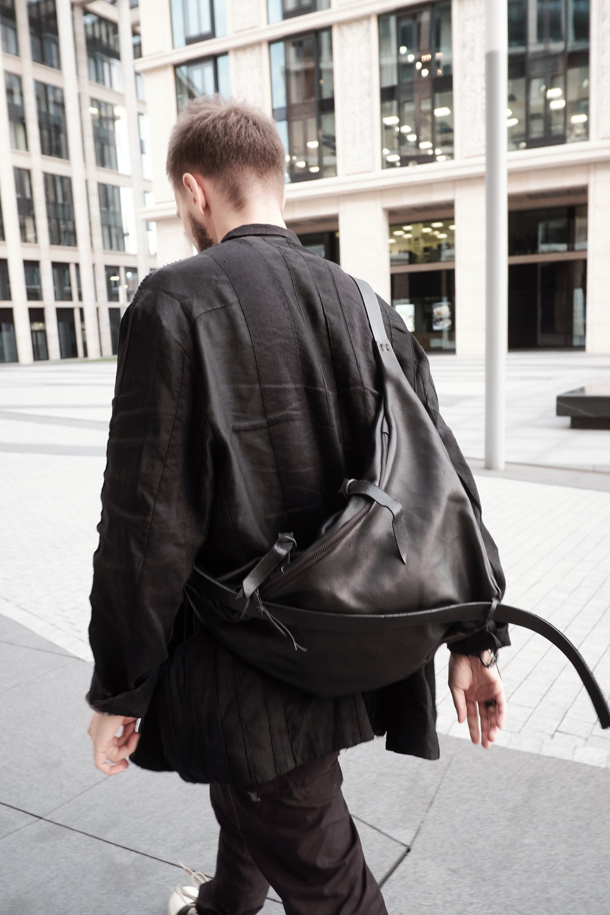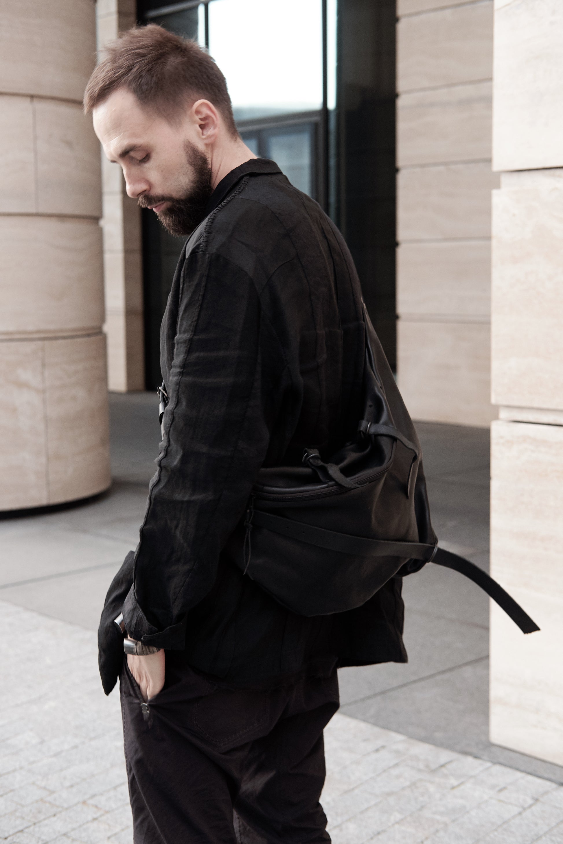 Material: Cow leather, wax cotton lining, YKK zippers, custom-forged blued steel